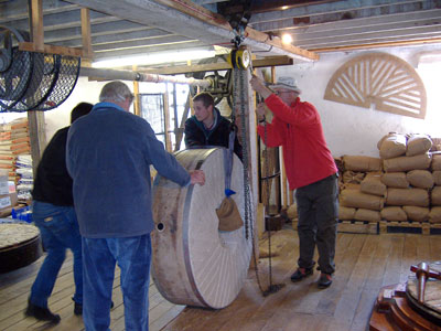 A watermill at Letheringsett was mentioned in the Domesday book. The present mill was built in 1802 to replace an earlier mill destroyed by fire. It was originally built to house four pairs of millstones, driven by the iron waterwheel but only two pairs are working today. The water wheel is unusual – it can be run breastshot or changed by a simple shutter to run undershot if the water level falls. Mike and Marion Thurlow took over the mill in 1987 and restored it to working order, and the family continue to run it. An award winning tourist attraction, it is the last remaining watermill in Norfolk to produce flour.
